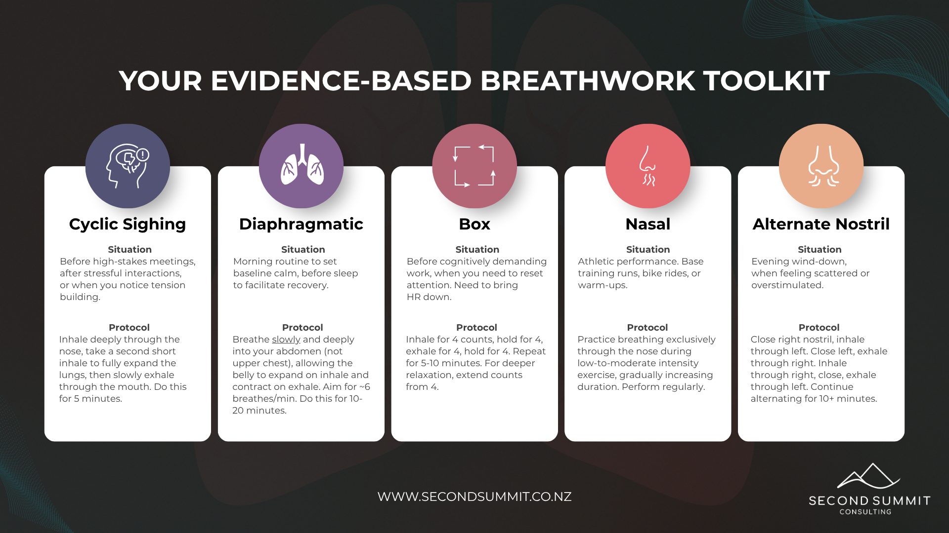 Your breath is the most accessible tool you have for regulating your nervous system, enhancing cognitive performance, and optimising physical output. Evidence shows that specific breathing practices can reduce stress, improve focus, enhance athletic performance, and increase resilience. This article breaks down the neuroscience and provides actionable protocols you can implement immediately. Scroll down to 'Actionable Protocols' below for five outcome-specific science-based protocols.
