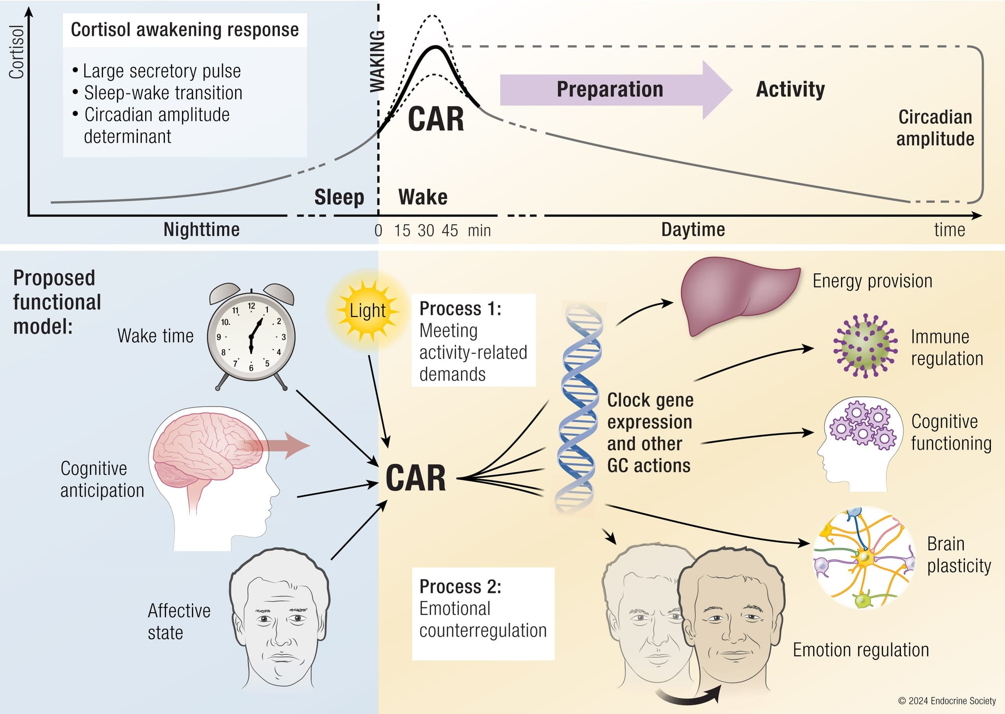 As mentioned above, the CAR is regulated by circadian, environmental, and neurocognitive processes to predict daily cortisol needs. A robust CAR is associated with better cognitive performance, while a blunted or exaggerated CAR indicates dysregulation.